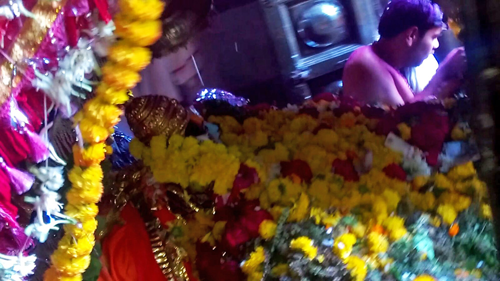 येथील श्रींच्या समाधी मंदिरात अभिषेक केल्यानंतर श्रींचे श्रीदत्तरूपातील दर्शनाचे छायाचित्र सोबत जोडले आहे.