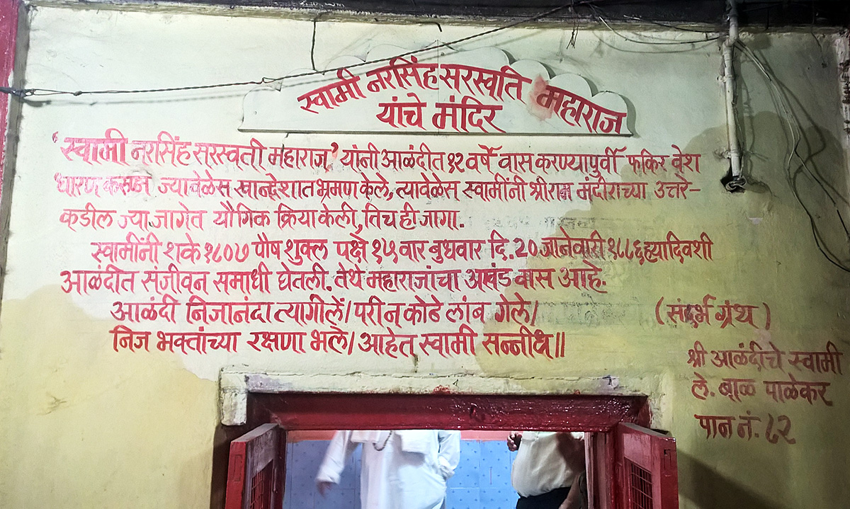 आळंदीतील वास्तव्यात श्री खंडोबाचे मंदिर, धाकट्या पादुका वगैरे ठिकाणी जात असत. श्री आळंदीचे स्वामी ह्या चरित्र ग्रंथात श्रींच्या वास्तव्यातील त्यांच्या जगदुध्दाराच्या कार्याचा व प्रमुख घटनांचा सविस्तर उल्लेख आलेला आहे.